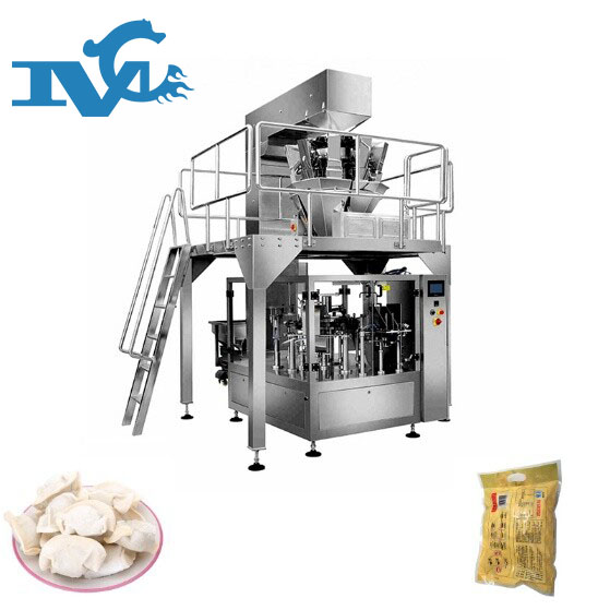 速凍食品包裝機包裝范圍:速凍水餃、冷凍蔬菜、肉丸、蔬果粒、冰塊等顆粒包裝機??煞譃樗賰鍪称方o袋式包裝機和速凍食品卷膜制袋包裝機兩種如下圖: